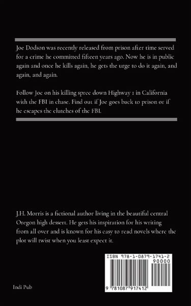 Joe Dodson was recently released from prison after time served for a crime he committed fifteen years ago. Now he is in public again and once he kills again, he gets the urge to do it again, and again, and again. Follow Joe on his killing spree down Highway 1 in California with the FBI in chase. Find out if Joe goes back to prison or if he escapes the clutches of the FBI.