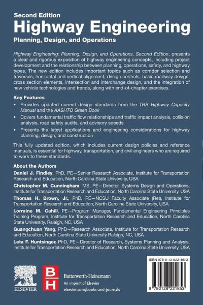 Highway Engineering: Planning, Design, and Operations, Second Edition, presents a clear and rigorous exposition of highway engineering concepts, including project development and the relationship between planning, operations, safety and highway types. The book includes important topics such as corridor selection and traverses, horizontal and vertical alignment, design controls, basic roadway design, cross section elements, intersection and interchange design, and the integration of new vehicle technologies and trends. It also presents end of chapter exercises to further aid understanding and learning.