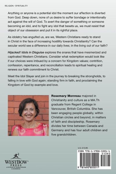 Anything or anyone is a potential idol the moment our affection is diverted from God. Deep down, none of us desire to suffer bondage or intentionally act against the will of God. To avert the danger of something or someone becoming an idol, and to fight any idol that besets us, we must resist that object of our obsession and put it in its rightful place. As idolatry has engulfed us, are we, Western Christians ready to stand in Christ in the face of increasing hostility towards Christianity? Can the secular world see a difference in our daily lives; in the living out of our faith? Hijacked! Idols in Disguise explores the snares that have mesmerized and captivated Western Christians. Consider what redemption would look like if our choices were imbued by a concern for Kingdom values; contrition, confession, repentance, and reconciliation leads to spiritual healing and renews our faith commitment to Christ. Meet the Idol Slayer and join in the journey to breaking the strongholds, to falling in love with God again; standing firm in faith, and proclaiming the Kingdom of God by example and love.