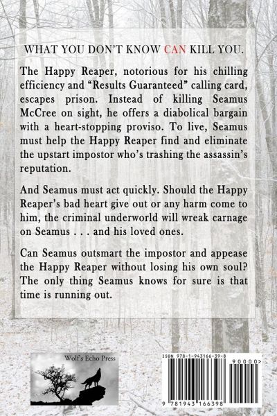 What you don't know can kill you. The Happy Reaper, notorious for his chilling efficiency and "Results Guaranteed" calling card, escapes prison. Instead of killing Seamus McCree on sight, he offers a diabolical bargain with a heart-stopping proviso. To live, Seamus must help the Happy Reaper find and eliminate the upstart impostor who's trashing the assassin's reputation. And Seamus must act quickly. Should the Happy Reaper's bad heart give out or any harm come to him, the criminal underworld will wreak carnage on Seamus . . . and his loved ones. Can Seamus outsmart the impostor and appease the Happy Reaper without staining his soul with blood? The only thing Seamus knows for sure is that time is running out for him and his family.