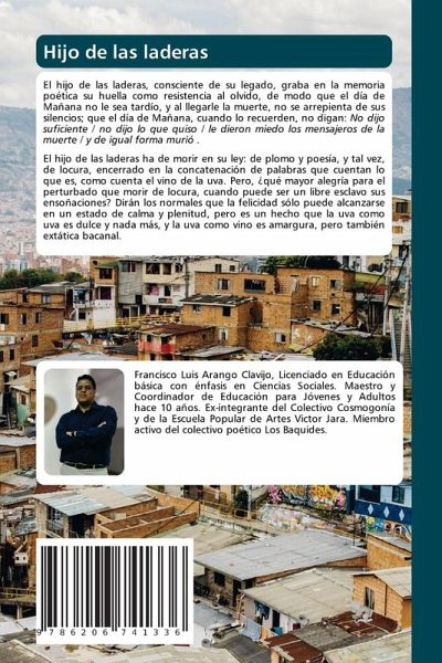 El hijo de las laderas, consciente de su legado, graba en la memoria poética su huella como resistencia al olvido, de modo que el día de Mañana no le sea tardío, y al llegarle la muerte, no se arrepienta de sus silencios; que el día de Mañana, cuando lo recuerden, no digan: No dijo suficiente / no dijo lo que quiso / le dieron miedo los mensajeros de la muerte / y de igual forma murió .El hijo de las laderas ha de morir en su ley: de plomo y poesía, y tal vez, de locura, encerrado en la concatenación de palabras que cuentan lo que es, como cuenta el vino de la uva. Pero, ¿qué mayor alegría para el perturbado que morir de locura, cuando puede ser un libre esclavo sus ensoñaciones? Dirán los normales que la felicidad sólo puede alcanzarse en un estado de calma y plenitud, pero es un hecho que la uva como uva es dulce y nada más, y la uva como vino es amargura, pero también extática bacanal.