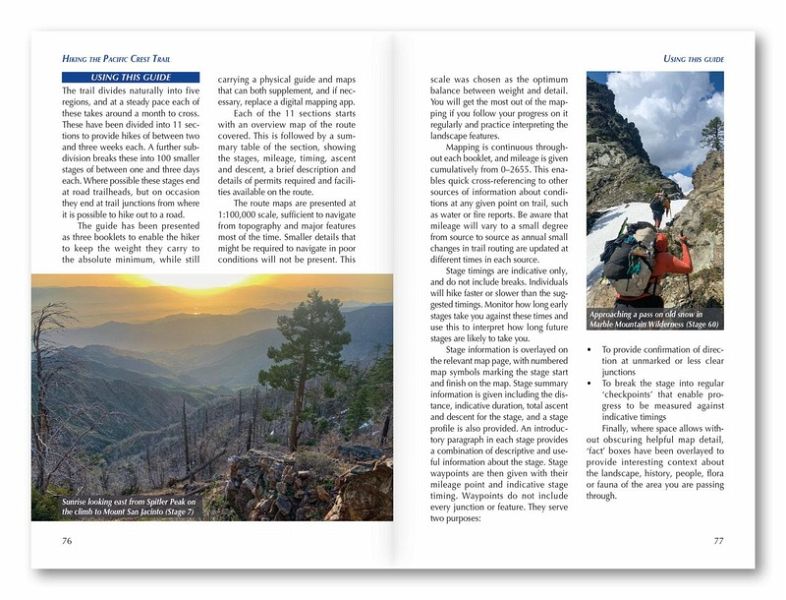 A comprehensive three-book set providing all the information needed to prepare for and hike the Pacific Crest Trail (PCT), a 2650-mile hike through California, Oregon and Washington. Designed to be compact and lightweight the set is separated into three books, an introduction to the trail (130g) and two map books (200g and 170g). The introductory book covers all at-home planning and preparation for hiking the PCT. * Detailed explanation of the trail structure, timings and how to approach the PCT * Suggested itineraries for 110-, 120-, 130- and 140-day thru-hikes and an easy-going start option to aid with planning * Advice on equipment and permits required on trail * A background of the trail's history * A look at the wildlife, flora and fauna encountered on the trail The two map books are designed to be used on the trail, one covering the southern stages from the Mexico border to northern California at Interstate 5, the other detailing the northern stages in Oregon and Washington to the Canadian border. * Presented as 100 1-3-day stages for easy planning of either day, section or thru-hikes * Where possible stages begin/end at trailheads for easy access to the route * 1:100,000 topographic maps for the whole trail that can be used to supplement or replace digital mapping apps * Each stage contains a waymarked route description with mileages, mapping, profiles, and locations of water sources and campsites * Resupply tables are included detailing where food, mail drops and laundrettes are available close to the trail
