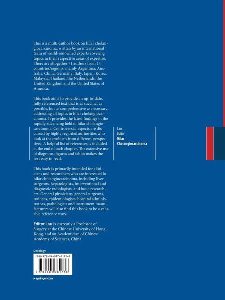 This is a multi-author book on hilar cholangiocarcinoma, written by an international team of world-renowned experts covering topics in their respective areas of expertise. There are altogether 71 authors from 14 countries/regions, mainly Argentina, Australia, China, Germany, Italy, Japan, Korea, Malaysia, Thailand, the Netherlands, the United Kingdom and the United States of America.This book aims to provide an up-to-date, fully referenced text that is as succinct as possible, but as comprehensive as necessary, addressing all topics in hilar cholangiocarcinoma. It provides the latest findings in the rapidly advancing field of hilar cholangiocarcinoma. Controversial aspects are discussed by highly regarded authorities who look at the problem from different perspectives. A helpful list of references is included at the end of each chapter. The extensive use of diagrams, figures and tables makes the text easy to read.This book is primarily intended for clinicians and researchers who are interested in hilar cholangiocarcinoma, including liver surgeons, hepatologists, interventional and diagnostic radiologists, and basic researchers. General physicians, general surgeons, trainees, epidemiologists, hospital administrators, pathologists and instrument manufacturers will also find this book to be a valuable reference work.Editor Lau is currently a Professor of Surgery at the Chinese University of Hong Kong, and an Academician of Chinese Academy of Sciences, China.
