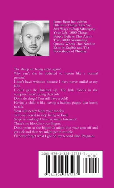 The sheep are being racist again! Why she can't be addicted to heroin like a normal person! I couldn't sleep! I was too excited and I couldn't stop thinking about my morning porridge. Don't do drugs! You still have a cold! Robocop is just Jesus with a robot. I can't get the Internet up. The little robots in the computer aren't doing their job. I can't find Noah's Ark under the "True Stories." I don't have wrinkles because I never smiled at my kids. There's no blood in your fingers. Having a child is like having a hairless puppy that learns to talk. Don't point at the hippo! It might bite your arm off and get sick and then we might get in trouble. Your suit nearly hides your moobs. You seem to get on well with my son in spite of his small hands and girly laugh. Is there kangaroo in beef pie? Tell your cereal to stop being so loud. Skype is working! I have so many Internets! I'll never forget what I got on my second date. Pregnant.