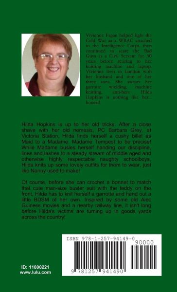 Hilda Hopkins is up to her old tricks. After a close shave with her old nemesis, PC Barbara Grey, at Victoria Station, Hilda finds herself a cushy billet as Maid to a Madame. Madame Tempest to be precise! While Madame busies herself handing our discipline, lines and lashes to a steady stream of middle aged and otherwise highly respectable naughty schoolboys, Hilda knits up some lovely outfits for them to wear, just like Nanny used to make! Of course, before she can crochet a bonnet to match that cute man-size buster suit with the teddy on the front, Hilda has to knit herself a garrotte and hand out a little BDSM of her own. Inspired by some old Alec Guiness movies and a nearby railway line, it isn't long before Hilda's victims are turning up in goods yards across the country!