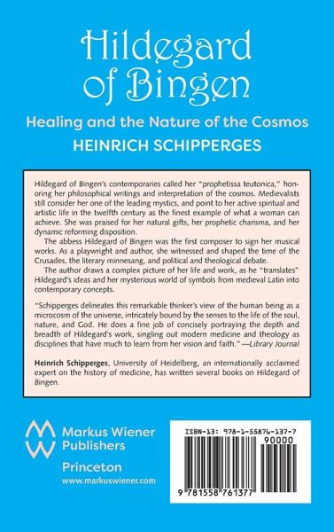 Hildegard of Bingen’s contemporaries called her "prophetissa teutonica," honoring her philosophical writings and interpretation of the cosmos. Medievalists still consider her one of the leading mystics, and point to her active spiritual and artistic life in the twelfth century as the finest example of what a woman can achieve. She was praised for her natural gifts, her prophetic charisma, and her dynamic reforming disposition. The abbess Hildegard of Bingen was the first composer to sign her musical works. As a playwright and author, she witnessed and shaped the time of the Crusades, the literary minnesang, and political and theological debate. The author draws a complex picture of her life and work, as he "translates" Hildegard’s ideas and her mysterious world of symbols from medieval Latin into contemporary concepts.