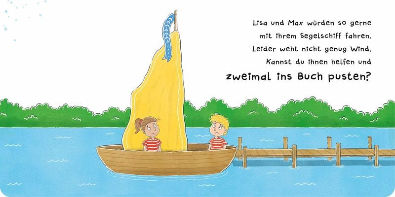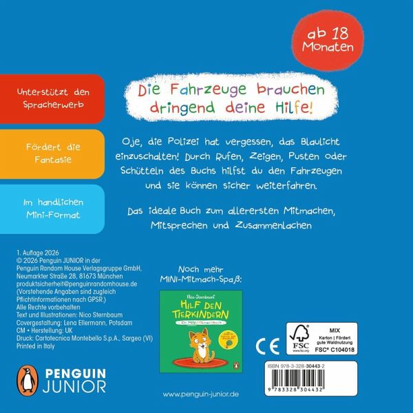 hervorgehobener Schrift gestellte Anweisung für das Kind, was hier am besten zu tun ist, wie z.B.…mehrIn „Hilf den Fahrzeugen“ ist der Titel Programm. Auf jeder Doppelseite wird ein Fahrzeug gezeigt, welches ein wenig Hilfe benötigt. Sowohl das Fahrzeug, als auch das geschehene auf dem Bild werden in einem kurzen, kindgerechten, verständlichem, kurzem Text erklärt. Es gibt jeweils eine in etwas hervorgehobener Schrift gestellte Anweisung für das Kind, was hier am besten zu tun ist, wie z.B. tippen, pusten, zeigen, Geräusche machen,… Ich finde sehr schön, dass das Kind direkt angesprochen wird, die Aufgaben sind gut lösbar. Auf der nächsten Doppelseite ist jeweils zu sehen, was nach dem Helfen geschehen ist. Gelungen finde ich hier, dass jetzt wieder das Kind angesprochen und für sein Handeln gelobt wird. Der Erfolg wird im Bild gezeigt. Die Fahrzeuge (welche, verrate ich hier nicht) sind einfach gezeichnet (manche Modelle wohl etwas veraltet), aber gut erkennbar. Auch die Emotionen der Fahrer sind gut zu erkennen, was mir immer wichtig ist. Die Bilder sind nicht zu überlaufen, für dieses Alter (ab 18 Monate) also nicht überfordernd.