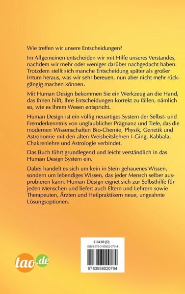 Dies ist das erste Buch auf Deutsch, das grundlegend und leicht verständlich in das Human Design System einführt. Diese Hilf dir Selbst -Methode ist an alle Menschen gerichtet, die neugierig sind, mehr über sich selbst zu erfahren und dadurch in die Lage versetzt werden, die richtigen Entscheidungen in ihrem Leben zu treffen. Human Design eignet sich nicht nur zur Selbsthilfe für jeden Menschen, sondern es liefert auch Eltern und Lehrern sowie Therapeuten, Ärzten und Heilpraktikern neue, ungeahnte Lösungsoptionen.