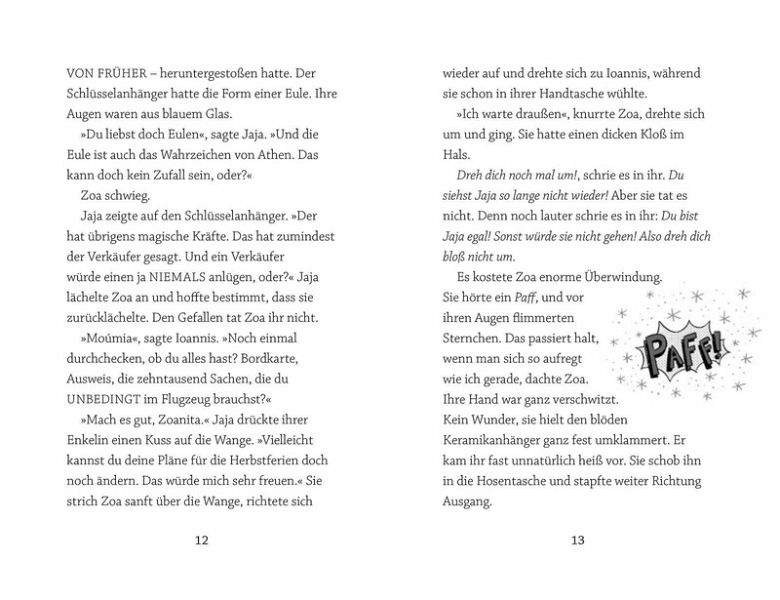 Zoa ist wütend. Erst wandert ihre Oma nach Griechenland aus, dann der Umzug in eine andere Stadt. An der neuen Schule muss Zoa erst mal neue Freunde finden. Was gar nicht so leicht ist, weil sie plötzlich von lauter mysteriösen Eulen verfolgt wird!