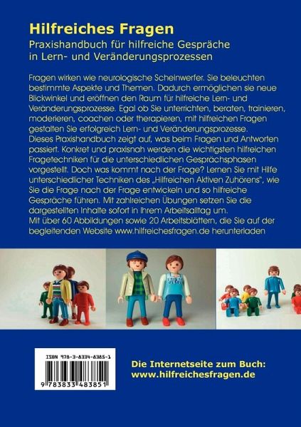 Fragen wirken wie neurologische Scheinwerfer: sie beleuchten bestimmte Aspekte und Themen. Dadurch ermöglichen sie neue Blickwinkel und eröffnen den Raum für hilfreiche Lern- und Veränderungsprozesse. Egal ob Sie unterrichten, beraten, trainieren, moderieren, coachen oder therapieren - mit hilfreichen Fragen gestalten Sie erfolgreich Lern- und Veränderungsprozesse. Dieses Praxishandbuch zeigt auf, was beim Fragen und Antworten passiert ("Modell des Fragens"). Konkret und praxisnah werden die wichtigsten hilfreichen Fragetechniken für die unterschiedlichen Gesprächsphasen vorgestellt. Doch was kommt nach der Frage? Lernen Sie mit Hilfe unterschiedlicher Techniken des "Hilfreichen Aktiven Zuhörens", wie Sie die Frage nach der Frage ("Anschlussfragen") entwickeln und so hilfreiche Gespräche führen. Mit vielfältigen Übungen ausgestattet, setzen Sie die dargestellten Inhalte sofort in Ihrem Arbeitsalltag um. Mit über 60 Abbildungen sowie 20 Übungsblättern, die Sie auf der begleitendenWebsite www.hilfreichesfragen.de herunterladen können, ist dieses Praxishandbuch Leitfaden und Arbeitsbuch zugleich.Der Autor Uwe Straß, Diplompädagoge, systemischer Therapeut und Berater (SG) ist seit vielen Jahren in unterschiedlichen Bereichen der Erwachsenenbildung als Trainer, Coach und Supervisor tätig.