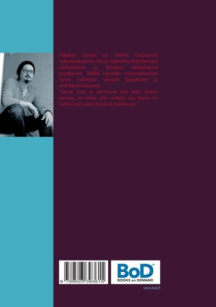 Hiljaisia runoja on Heikki Ojanperän esikoiskokoelma. Se on tutkielma hajottavasta rakkaudesta ja ihmisen rikkinäisestä psyykestä. Välillä hyvinkin minimalisistiset runot vaihtuvat sanojen kaaokseen ja mahtipontisuuteen. "Sanat ovat ja asettuvat niin kuin niiden kuuluu, en minä sille mitään voi. Runo on valmis kun sanat löytävät paikkansa."
