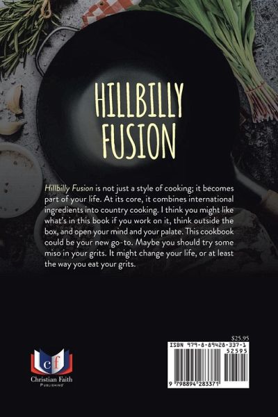 Hillbilly Fusion is not just a style of cooking; it becomes part of your life. At its core, it combines international ingredients into country cooking. I think you might like what's in this book if you work on it, think outside the box, and open your mind and your palate. This cookbook could be your new go-to. Maybe you should try some miso in your grits. It might change your life, or at least the way you eat your grits.