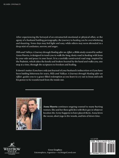 After experiencing the betrayal of an extramarital emotional or physical affair, or the agony of a husband battling pornography, the journey to healing can be overwhelming and daunting. Some days may feel light and easy, while others may seem shrouded in a deep mist of confusion, sorrow, and anger. Hills and Valleys: A Journey through Healing after an Affair, a Bible study created by author Anna Huerta, is designed to teach you to walk the long, dusty road to healing with Jesus by your side and peace in your heart. It is a carefully constructed road map, inspired by the Psalmist, which takes the lonely and broken-hearted by the hand and walks you, one step at a time, through the scriptures to freedom and healing. It doesn't matter if you have only just learned of your husband's indiscretion or if you have been battling bitterness for years, Hills and Valleys: A Journey through Healing after an Affair, guides you to a grace-filled redemption as you learn to cry out to Jesus and seek his power to be transformed from the inside out.