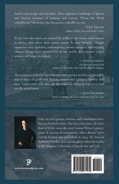 Dan Alter's poems, reviews, and translations have been published widely. His first collection, My Little Book of Exiles, won the 2022 Cowan Writer's poetry prize. A volume of translations, Take a Breath, You're Getting Excited, was published in 2024. He lives in Berkeley with his wife and daughter where he works at the Magnes Collection of Jewish Art and Life.