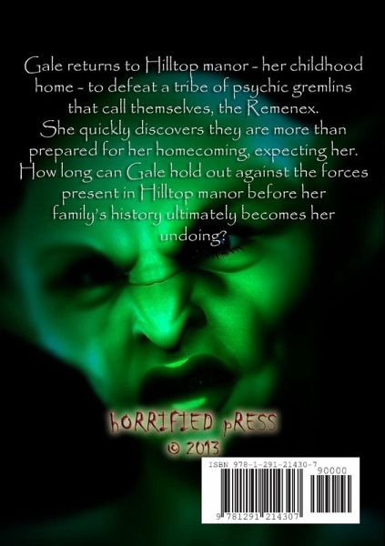 Gale returns to Hilltop Manor-her childhood home-to defeat a tribe of psychic gremlins that call themselves, the Remenex. She quickly discovers they are more than prepared for her homecoming, expecting her. How long can Gale hold out against the forces present in Hilltop Manor before her family's history ultimately becomes her undoing?
