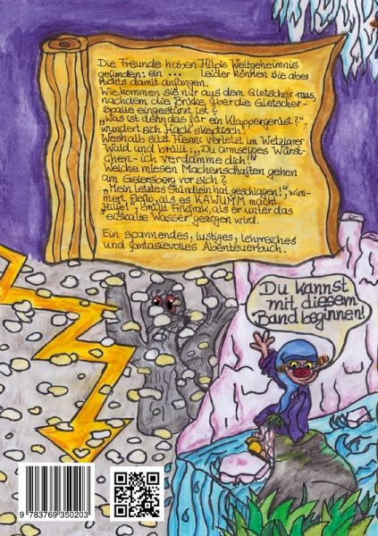Vorlesebuch ab 6 Jahre Lesebuch ab 8 Jahre Eine Abenteuerreise von Deutschland (Bd 1 - 8) über Island (Bd 9 - 14) nach Frankreich (Bd 15-23) Ein spannendes, lustiges, lehr- und fantasiereiches Abenteuerbuch. Worum geht es? Die Freunde haben Hilpis Weltgeheimnis gefunden. Leider können sie aber nichts damit anfangen. Wie kommen sie nur aus dem Gletscher raus, nachdem die Brücke über die Gletscherspalte eingestürzt ist? «Was ist denn das für ein Klappergerüst?», wundert sich Hack skeptisch. Weshalb sitzt Henni verletzt im Wetzlarer Wald und brüllt: «Du armseliges Würstchen. Ich verdamme dich!»…mehr