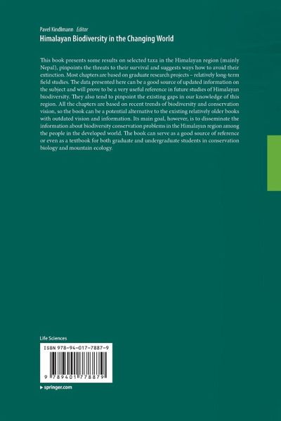 This book presents some results on selected taxa in the Himalayan region (mainly Nepal), pinpoints the threats to their survival and suggests ways how to avoid their extinction. Most chapters are based on graduate research projects - relatively long-term field studies. The data presented here can be a good source of updated information on the subject and will prove to be a very useful reference in future studies of Himalayan biodiversity. They also tend to pinpoint the existing gaps in our knowledge of this region. All the chapters are based on recent trends of biodiversity and conservation vision, so the book can be a potential alternative to the existing relatively older books with outdated vision and information. Its main goal, however, is to disseminate the information about biodiversity conservation problems in the Himalayan region among the people in the developed world.