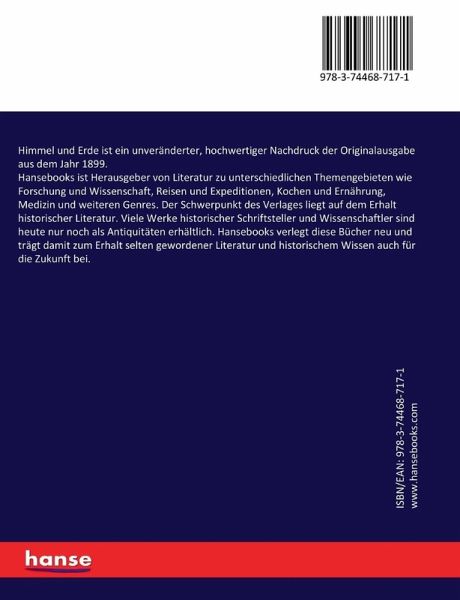 Himmel und Erde ist ein unveränderter, hochwertiger Nachdruck der Originalausgabe aus dem Jahr 1899.