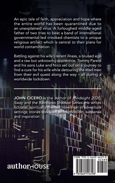 An epic tale of faith, appreciation and hope where the entire world has been quarantined due to an unexplained virus. A furloughed middle-aged father of two tries to beat a band of international governmental-led crooked chemists to a unique religious artifact which is central to their plans for world contamination. Battling against his wife's recent illness, a bruised ego and a raw but unknowing apprentice, Tommy Parete and his sons Luke and Nico set out on a journey to find a cure for his wife while detouring the mad men from their evil quest along the way - all during a worldwide lockdown.