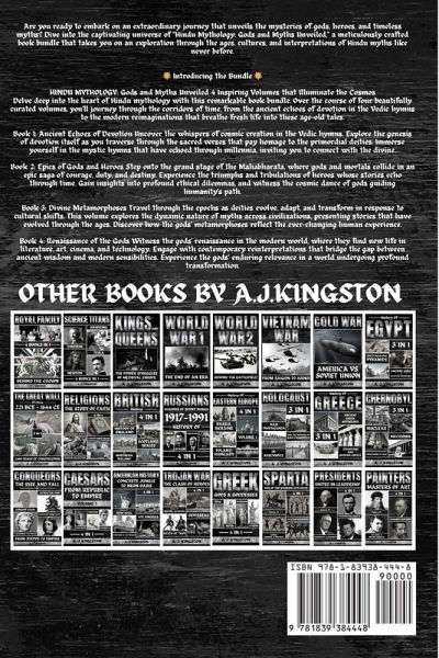 ¿¿¿¿ Discover the Enchanting World of Hindu Mythology ¿¿¿¿¿ Are you ready to embark on an extraordinary journey that unveils the mysteries of gods, heroes, and timeless myths? Dive into the captivating universe of "Hindu Mythology: Gods and Myths Unveiled," a meticulously crafted book bundle that takes you on an exploration through the ages, cultures, and interpretations of Hindu myths like never before. ¿¿¿¿ Introducing the Bundle ¿¿¿¿ HINDU MYTHOLOGY: Gods and Myths Unveiled 4 Inspiring Volumes that Illuminate the Cosmos Delve deep into the heart of Hindu mythology with this remarkable book bundle. Over the course of four beautifully curated volumes, you'll journey through the corridors of time, from the ancient echoes of devotion in the Vedic hymns to the modern reimaginations that breathe fresh life into these age-old tales. Book 1: Ancient Echoes of Devotion Uncover the whispers of cosmic creation in the Vedic hymns. Explore the genesis of devotion itself as you traverse through the sacred verses that pay homage to the primordial deities. Immerse yourself in the mystic hymns that have echoed through millennia, inviting you to connect with the divine. Book 2: Epics of Gods and Heroes Step onto the grand stage of the Mahabharata, where gods and mortals collide in an epic saga of courage, duty, and destiny. Experience the triumphs and tribulations of heroes whose stories echo through time. Gain insights into profound ethical dilemmas, and witness the cosmic dance of gods guiding humanity's path. Book 3: Divine Metamorphoses Travel through the epochs as deities evolve, adapt, and transform in response to cultural shifts. This volume explores the dynamic nature of myths across civilizations, presenting stories that have evolved through the ages. Discover how the gods' metamorphoses reflect the ever-changing human experience. Book 4: Renaissance of the Gods Witness the gods' renaissance in the modern world, where they find new life in literature, art, cinema, and technology. Engage with contemporary reinterpretations that bridge the gap between ancient wisdom and modern sensibilities. Experience the gods' enduring relevance in a world undergoing profound transformation. ¿¿¿¿ Why Choose This Bundle? ¿¿¿¿ ¿¿¿¿ Comprehensive Exploration: Immerse yourself in the richness of Hindu mythology across the ages, from its inception to its contemporary expressions. ¿¿¿¿ Gateway to Spirituality: Encounter the divine mysteries that have inspired seekers and spiritualists for centuries, sparking profound introspection and contemplation. ¿¿¿¿ Don't Miss Out! ¿¿¿¿