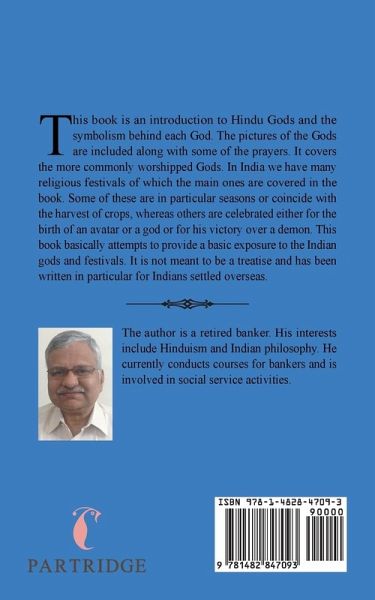 This book is an introduction to Hindu Gods and the symbolism behind each God. The pictures of the Gods are included along with some of the prayers. It covers the more commonly worshipped Gods. In India we have many religious festivals of which the main ones are covered in the book. Some of these are in particular seasons or coincide with the harvest of crops, whereas others are celebrated either for the birth of an avatar or a god or for his victory over a demon. This book basically attempts to provide a basic exposure to the Indian gods and festivals. It is not meant to be a treatise and has been written in particular for Indians settled overseas.