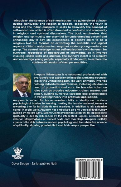 About the Book "Hinduism: The Science of Self-Realization" is a guide aimed at introducing spirituality and religion to readers, especially the youth in India and the Indian diaspora. It seeks to demystify the concept of self-realization, which is often shrouded in confusion and complexity in religious and spiritual discussions. The book emphasizes that religion and spirituality are essential for understanding oneself and enhancing day-to-day life experiences. It doesn't claim to be a religious text but focuses on extracting the scientific and logical aspects of Hindu scriptures in a way that modern young readers can grasp. The central message is that self-realization is within reach for everyone, regardless of background or knowledge, as it involves invoking innate skills and abilities. The author's intent is to simplify and encourage young people, especially Hindu youth, to explore the spiritual dimension of their personalities. About the Author Anupam Srivastava is a seasoned professional with over 35 years of experience in social work and counseling in the United Kingdom. His work primarily involves helping individuals and families, including children in need of protection and care. He has also taken on roles such as practice educator, trainer, mentor, and coach, guiding numerous students and professionals in translating theory into practical application. Anupam is known for his remarkable ability to identify and address psychological barriers to learning, making the transformational journey a rewarding one for his students and mentees. In addition to his extensive career in social work, Anupam has embarked on a 40-year spiritual journey guided by his late Guru, Swami Chinmayananda Sarasvati. His approach to spirituality is deeply influenced by the intellectual, logical, scientific, and rational interpretations of ancient texts and teachings. Anupam skillfully connects the dots between modern psychology and the subjective