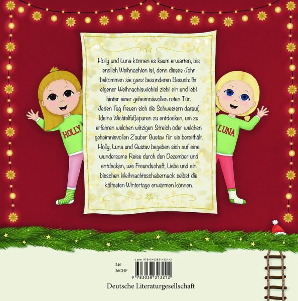 Holly und Luna können es kaum erwarten, bis endlich Weihnachten ist! Und in diesem Jahr bekommen sie sogar Besuch vom Nordpol: Gustav, der Weihnachtswichtel zieht bei den Schwestern ein und begeistert bis zum heiligen Abend mit magischen kleinen Geschenken, zauberhaften Überraschungen und lustigen Streichen. Eine herzerwärmende Geschichte über Freundschaft, Liebe und den Zauber der Weihnachtszeit.