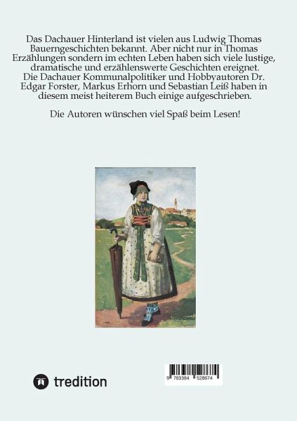 In diesem Buch erzählen die Autoren heitere, dramatische und stets unterhaltsame Geschichten aus dem Dachauer Hinterland. Viele diese Geschichten wurden ihnen erzählt, einige sind selbst erlebt und wieder andere sind eine Mischung aus beidem.