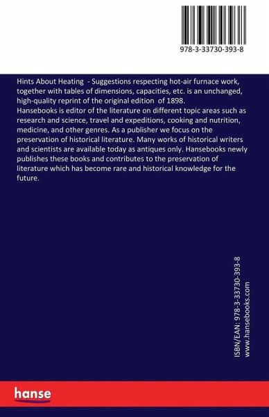 Hints About Heating - Suggestions respecting hot-air furnace work, together with tables of dimensions, capacities, etc. is an unchanged, high-quality reprint of the original edition of 1898.