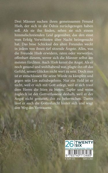 Drei Männer suchen ihren gemeinsamen Freund Hiob, der sich in die Ödnis zurückgezogen haben soll. Als sie ihn finden, sehen sie sich einem himmelschreienden Leid gegenüber, das den einst vom Erfolg Verwöhnten über Nacht heimgesucht hat. Das böse Schicksal des alten Freundes weckt in jedem von ihnen tief sitzende Ängste. Alles, was die Freunde Hiob erwidern, raten oder vorwerfen, offenbart diesem, wovor sich die Männer selbst am meisten fürchten. Auch Hiob kennt die Angst. Als er noch gesund und wohlhabend war, plagte ihn oft das Gefühl, seines Glückes nicht wert zu sein. Doch nun ist er entschlossen, für seine Würde zu kämpfen und gegen sein Los aufzubegehren. Aber ein Held ist er nicht, weil er sich mit Gott anlegt, weil er sich traut dem Herrn die Stirn zu bieten. Tapfer und weise zugleich ist der Gottverlassene nur, weil er der Angst nicht gestattet, ihn zu beherrschen. Damit lässt er auch die Gottesfurcht hinter sich und wagt den Weg des Vertrauens.
