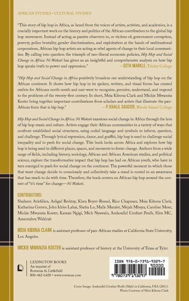 1. Introduction by Msia Kibona Clark and Mickie Mwanzia Koster Part I: "Social Ills": Coming from Behind the Microphone to Effect Reform in Africa 2. Hip-Hop Halisi: Continuities of Heroism on the African Political Landscape, Caroline Mose 3. Building Our Nation: Sénégalese Hip Hop Artists as Agents of Social and Political Change, Sheba Lo 4. Speaking Truth to Power: Hip-Hop and the African Awakening, Amentahru Wahlrab Essay 1 English. "Malian Hip Hop: Social Engagement through Music," Amkoullel L'enfant Peulh Part II: "The Dusty Foot Philosopher": Hip Hop Voices on Social Change in Africa Essay 2. "How Hip Hop Impacts Social Change in Africa," Malle Marxist 5. Redefining the Struggle: Remembering the Mau Mau through Hip-Hop Music, Mich Nyawalo 6. Khoi Hop: Hip Hop, Youth Activism and the Dilemma of Coloured Identity in South Africa, Shaheen Ariefdien and Rico Chapman 7. Beyond "Y'en a Marre": Pikine's Hip Hop Youth Say "Enough is Enough" and Pave the Way for Continuous Social Change, Asl