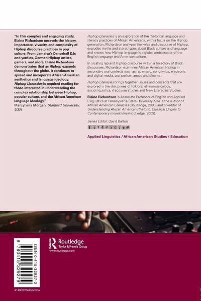 Hiphop Literacies is an exploration of the rhetorical, language and literacy practices of African Americans, with a focus on the Hiphop generation. Richardson analyses the lyrics and discourse of Hiphop, explodes myths and stereotypes about Black culture and language and shows how Hiphop language is a global ambassador of the English language and American culture.