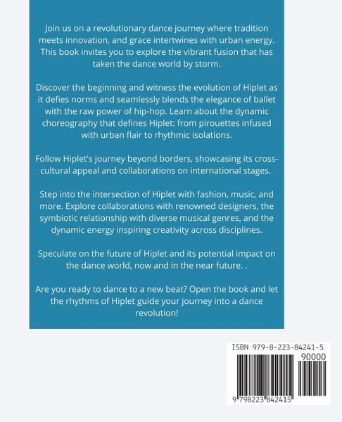 Join us on a captivating journey into the rhythmic realm where classical grace meets urban flair; a world where tradition and innovation harmonize to create the groundbreaking dance phenomenon known as Hiplet. "Hiplet: Bridging the Rhythms of Ballet and Hip-Hop" takes you into the rich history, vibrant evolution and cultural significance of this enchanting dance form. Most important features:Origins and Evolution: Discover Hiplet's roots in the busy streets of Chicago and follow the evolution of this dance style as it defies convention and seamlessly combines the elegance of ballet with the energy of hip-hop. Special Movements: Delve into the intricacies of Hiplet's signature movements and choreography. From pirouettes with urban flair to rhythmic isolations, discover the nuanced expressions that define the fusion and speak the language of Hiplet with confidence. Global Impact: Learn about Hiplet's international rise as it transcends geographic boundaries and captures the hearts of audiences around the world. Dive into remarkable performances and collaborations on global stages and explore the cross-cultural exchange that defines this dance revolution. The Creative Intersection: Discover how Hiplet extends beyond the dance studio and mixes with fashion, music and other creative fields. Unravel the collaborations with renowned designers, the symbiotic relationship with various music genres and the dynamic energy that inspires interdisciplinary synergy. Cultural Movement: Dive into the cultural significance of Hiplet as a movement that embodies diversity, inclusion and empowerment. Read the personal stories of people who have embraced Hiplet as an indispensable element in their lives. The future of Hiplet: Imagine with us about the future of Hiplet and its potential impact on the dance world. Discover emerging trends, interdisciplinary collaborations and technological integrations that promise to shape the evolution of this innovative dance form. "Hiplet: Bridging the Rhythms of Ballet and Hip-Hop" invites dance enthusiasts, students and curious minds to enter Hiplet's vibrant dance floor. Immerse yourself in this unique dance style that defies expectations, celebrates diversity and ensures the enduring appeal of Hiplet as a bridge between classical and contemporary dance forms.