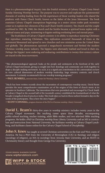 Here is a phenomenological inquiry into the fruitful ministry of Calvary Chapel Costa Mesa's Sunday Morning Worship Service. The purpose was to uncover and explicate the quintessential elements of worship leading from the life experiences of those worship leaders who shared the platform with Pastor Chuck Smith, known as the father of the Jesus Movement. The book examines Calvary Chapel's inauspicious beginnings in a senior citizen trailer park recreation center as it explores key elements of Kay and Chuck Smith's ministry. The church and the couple combined in 1965. By 1968, the church and the Smiths became a spiritual home replete with a spiritual mama and papa, ministering to hippies seeking everlasting love and eternal peace. The fruitfulness of Calvary Chapel's ministry is its ability to reproduce maturing Christians that reproduce maturing Christians. This replication occurred thousands of times as the movement blossomed and spread to new churches and new ministries across the United States and globally. The phenomenon spawned a megachurch movement and birthed the modern Christian worship music industry. The hippies were alternately loathed and loved in their era. Perhaps the hippies' most enduring and endearing contributions to twenty-first-century culture are traced to the Jesus movement.