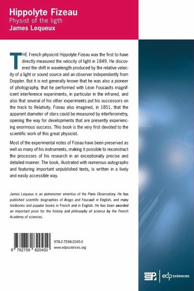 Après les biographies scientifiques d'Arago et de Le Verrier, James Lequeux nous présente celle d'un autre grand savant du XIXe siècle : Hippolyte Fizeau. On sait que Fizeau est le premier à avoir mesuré la vitesse de la lumière, et qu'il a découvert indépendamment de Doppler le décalage en longueur d'onde lié à la vitesse relative de la source et de l'observateur. Cependant on ignore généralement qu'il fut un pionnier de la photographie, qu'il a fait avec Foucault de magnifiques expériences d'interférence, notamment dans l'infrarouge, et que plusieurs de ses autres expériences ont mis ses successeurs sur la piste de la Relativité. Fizeau imagina aussi dès 1851 que l'on pourrait mesurer par interférométrie le diamètre apparent des étoiles, ouvrant ainsi la voie à des développements qui connaissent aujourd'hui une véritable explosion.
