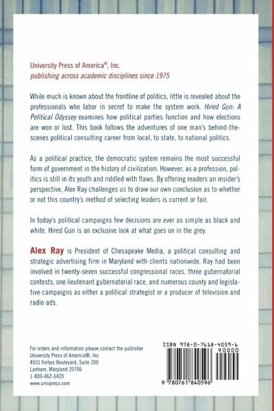 While much is known about the frontline of politics, little is revealed about the professionals who labor in secret to make the system work. Hired Gun: A Political Odyssey examines how political parties function and how elections are won or lost. This book follows the adventures of one man's behind-the-scenes political consulting career from local, to state, to national politics. As a political practice, the democratic system remains the most successful form of government in the history of civilization. However, as a profession, politics is still in its youth and riddled with flaws. By offering readers an insider's perspective, Alex Ray challenges us to draw our own conclusion as to whether or not this country's method of selecting leaders is current or fair. In today's political campaigns few decisions are ever as simple as black and white. Hired Gun is an exclusive look at what goes on in the grey.