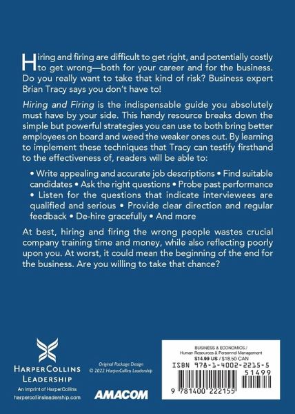 Hiring and firing are too crucial to get wrong. Eliminate the guesswork in the two most important tasks you face as a manager. Hiring and firing are difficult to get right and potentially costly to get wrong, both for your career and for the business. Hiring & Firing is the indispensable guide you absolutely must have by your side. Business expert Brian Tracy breaks down the simple but powerful strategies you can use to both bring stronger employees on board and weed out those not up to par. By learning to implement these techniques that Tracy can testify firsthand to the effectiveness of, you…mehr