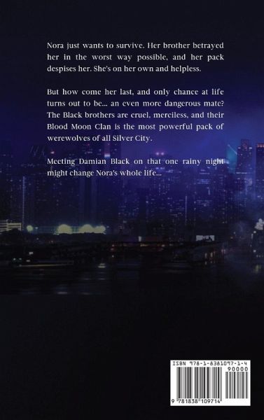 Nora just wants to survive. Her own brother betrayed her in the worst way possible, her pack despises her. She's on her own and helpless. But how come her last and only chance at life turns out to be... an even more dangerous mate? The Black brothers are cruel, merciless and their Blood Moon Clan is the most powerful werewolf pack of all in Silver City. A fateful meeting with Damian Black on that one rainy night might change her whole life... Uncover the Paranormal Romance Story that already shook 3 million readers!