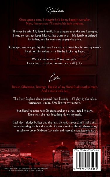 SIOBHÁN Once upon a time, I thought he'd be my happily ever after. Now, I'm not sure I'll survive his dark vendetta. I'll never be safe. My found family is as dangerous as the one I escaped. I need to run, but Luca Moretti has other plans. My family murdered his father, and he wants me to pay the price. Kidnapped and trapped by the man I wanted as a lover but is now my enemy, I wait for him to break me like he broke my heart. We're a modern-day Romeo and Juliet. Except in our version, Romeo tries to kill Juliet. LUCA Desire. Obsession. Revenge. The end of my blood feud is within reach. And it starts with her. The New England dons granted their blessing-if I play by the rules, vengeance is mine. One life for my father's. But blood demons need Sources, and as a capo, I need to earn. Even with the feds breathing down my neck. Each day I dodge bullets and the law, she chips away at my walls until there's nothing left but the truth. An unwanted truth that shatters my resolve to break Siobhán Connelly and instead make her mine. ****** HIS DARK VENDETTA is the second book in the Bonded in Blood series. Each book is an interconnected standalone Paranormal Mafia Romance with a guaranteed HEA.
