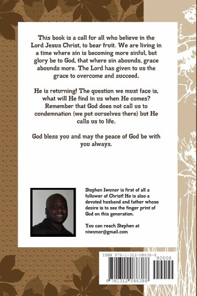 This book is a call for all who believe in the Lord Jesus Christ, to bear fruit. We are living in a time where sin is becoming more sinful, but glory be to God because where sin abounds, grace abounds more. The Lord has given us the grace to overcome and succeed. He has given us the power to leave His fingerprint on this generation.
