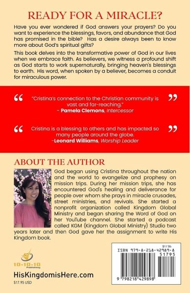 Have you ever wondered if God answers your prayers? Do you want to experience the blessings, favors, and abundance that God has promised in the bible? Has a desire always been to know more about God's spiritual gifts? The grace of God is upon His people, and there are several testimonies of people sharing the goodness of God through answered prayers of healing, deliverance, blessings, and favors. People worldwide share their personal experiences of how God was always there, Jesus made a way, and the Holy Spirit was revealed to them. This book delves into the transformative power of God in our lives when we embrace faith. As believers, we witness a profound shift as God starts to work supernaturally, bringing heaven's blessings to earth. His word, when spoken by a believer, becomes a conduit for miraculous power.