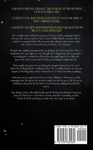 From Wall Street Journal and USA Today bestselling author Vivian Wood comes a new first time billionaire romance. Fans of The Stopover by TL Swan, The Fine Print by Lauren Asher, and My Dark Romeo by Parker S. Huntington and LJ Shen will love this book. A rich politician chasing the power of the highest office in the land. A naive young reporter assigned to follow him on the campaign trail. A sizzling secret she whispers in his ear about how he could be her first. He's a billionaire with obscenely good looks, on the campaign trail to become the next president. She's a sweet little blonde reporter who is much too young for him. The moment she whispers her secret - that she's never been with anyone before - he's hooked. Despite his ruthless pursuit of the presidency, he can't resist her. She's a temptation he can't ignore, even though she's dangerous; she jeopardizes everything he's worked for. But when she pulls him in for a kiss, he knows he can't resist, and he'll stop at nothing to make her his. Their night of passion is everything he imagined and more. He can't shake the feeling that he's falling for her. He's wealthy, lavish, and has an empire at his fingertips, but he wants her to be his more than anything. Jealousy rears its ugly head as he sees her talking to other men on the campaign bus. He knows he needs to make her his for good. He'll stop at nothing to keep her by his side, even if it means risking his political career. One thing is clear: Meredith is his, and he'll stop at nothing to keep her that way. Their love is decadent, steamy, and all-consuming, and he knows he'll do anything to make sure she stays in his arms.