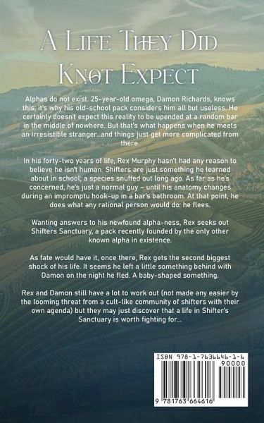 A Life They Did Knot Expect Alphas do not exist. 25-year-old omega, Damon Richards, knows this; it's why his old-school pack considers him all but useless. He certainly doesn't expect this reality to be upended at a random bar in the middle of nowhere. But that's what happens when he meets an irresistible stranger...and things just get more complicated from there. In his forty-two years of life, Rex Murphy hasn't had any reason to believe he isn't human. Shifters are just something he learned about in school; a species snuffed out long ago. As far as he's concerned, he's just a normal guy - until his anatomy changes during an impromptu hook-up in a bar's bathroom. At that point, he does what any rational person would do: he flees. Wanting answers to his newfound alpha-ness, Rex seeks out Shifters Sanctuary, a pack recently founded by the only other known alpha in existence. As fate would have it, once there, Rex gets the second biggest shock of his life. It seems he left a little something behind with Damon on the night he fled. A baby-shaped something. Rex and Damon still have a lot to work out (not made any easier by the looming threat from a cult-like community of shifters with their own agenda) but they may just discover that a life in Shifter's Sanctuary is worth fighting for... CWs: His Prodigal Alpha is a sweet, instant attraction (fated mates) romance. It IS an mpreg with an unexpected pregnancy, and it does contain some violence, threats, kidnapping/abduction of small children/infants (I promise it's brief and has a HEA), anxiety/allusions to an emotionally abusive upbringing, a birthing scene, talk of infertility, and some angst, as well as some rope play/shibari and discussion about unsafe BDSM practices. This book contains elements suited to readers over the age of 18.