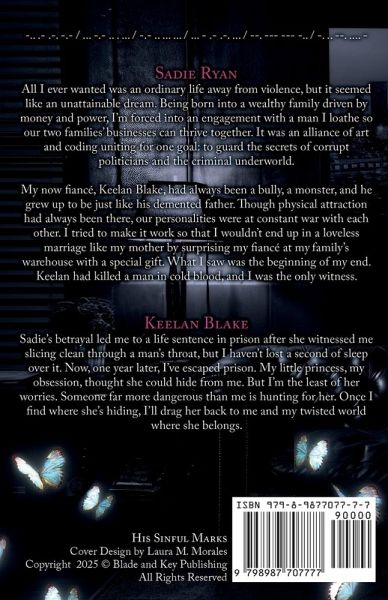 This standalone dark romance is perfect for those who love enemies-to-lovers tropes with morally gray, unhinged & possessive MMCs, mafia, kidnapping, and close proximity. He was never meant to find me. But secrets can't stay locked away forever. Sadie Ryan All I ever wanted was an ordinary life away from violence, but it seemed like an unattainable dream. Being born into a wealthy family driven by money and power, I'm forced into an engagement with a man I loathe so our two families' businesses can thrive together. It was an alliance of art and coding uniting for one goal: to guard the secrets of corrupt politicians and the criminal underworld. My now fiancé, Keelan Blake, had always been a bully, a monster, and he grew up to be just like his demented father. Though physical attraction had always been there, our personalities were at constant war with each other. I tried to make it work so that I wouldn't end up in a loveless marriage like my mother by surprising my fiancé at my family's warehouse with a special gift. What I saw was the beginning of my end. Keelan had killed a man in cold blood, and I was the only witness. Keelan Blake Sadie's betrayal led me to a life sentence in prison after she witnessed me slicing clean through a man's throat, but I haven't lost a second of sleep over it. Now, one year later, I've escaped prison. My little princess, my obsession, thought she could hide from me. But I'm the least of her worries. Someone far more dangerous than me is hunting for her. Once I find where she's hiding, I'll drag her back to me and my twisted world where she belongs. Author's Note This story is intended for an 18+ audience. It is dark and contains situations that may be disturbing to others. The MMC is unapologetically unhinged, possessive, and dangerous. This standalone does have a happily-ever-after, and it will conclude at the end of the epilogue with no cliffhanger.
