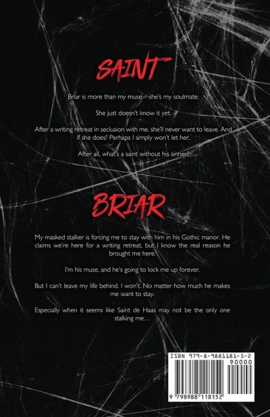 He's her saint . . . now she'll be his sinner. Saint Briar is more than my muse-she's my soulmate. She just doesn't know it yet. After a writing retreat in seclusion with me, she'll never want to leave. And if she does? Perhaps I simply won't let her. After all, what's a saint without his sinner? Briar My masked stalker is forcing me to stay with him in his Gothic manor. He claims we're here for a writing retreat, but I know the real reason he brought me here. I'm his muse, and he's going to lock me up forever. But I can't leave my life behind. I won't. No matter how much he makes me want to stay. Especially when it seems like Saint de Haas may not be the only one stalking me...