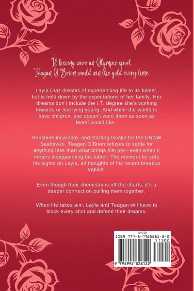 "If kissing were an Olympic sport, Teagan O'Brien would win the gold every time." Layla Diaz dreams of experiencing life to its fullest, but is held down by the expectations of her family. Her dreams don't include the I.T. degree she's working towards or marrying young. And while she wants to have children, she doesn't want them as soon as Mami would like. Sunshine incarnate, and starting Goalie for the UNCW Seahawks, Teagan O'Brien refuses to settle for anything less than what brings him joy-even when it means disappointing his father. The moment he sets his sights on Layla, all thoughts of his recent breakup vanish. Even though their chemistry is off the charts, it's a deeper connection pulling them together. When life takes aim, Layla and Teagan will have to block every shot and defend their dreams.