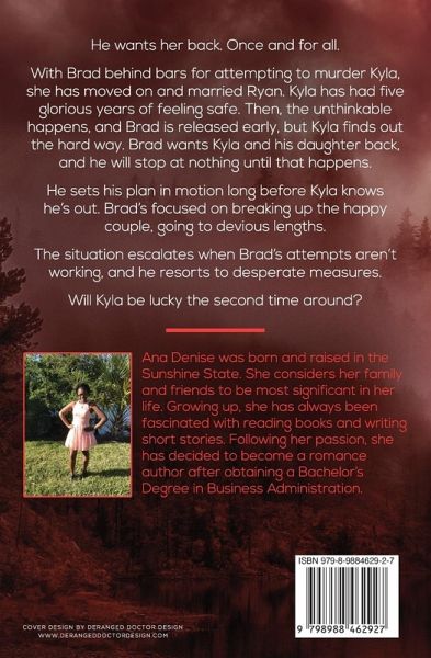 He wants her back. Once and for all. With Brad behind bars for attempting to murder Kyla, she has moved on and married Ryan. Kyla has had five glorious years of feeling safe. Then, the unthinkable happens, and Brad is released early, but Kyla finds out the hard way. Brad wants Kyla and his daughter back, and he will stop at nothing until that happens. He sets his plan in motion long before Kyla knows he's out. Brad's focused on breaking up the happy couple, going to devious lengths. The situation escalates when Brad's attempts aren't working, and he resorts to desperate measures. Will Kyla be lucky the second time around?