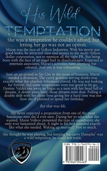 She was a temptation he couldn't afford, but letting her go was not an option. Marat was the face of Volkov Industries. With his movie star good looks, he attracted class and money to the multi-billion dollar corporation, not to mention all the right PR. But being born with the face of an angel had its disadvantages. Expected to entertain associates, Marat's activities were anything but celestial. And yes, it was exhausting. Sent on an errand to Sin City in the name of business, Marat needed a diversion. The curvy goddess serving drinks was exactly what this playboy billionaire craved. He was not looking for forever, but some temptations were too good to let go. Destiny Valdez ran away to Vegas as a teen with her head full of dreams. A dozen years later, those dreams were dust. Pulling a double shift with her slimy boss giving her a hard time was not how she'd planned to spend her birthday. But that was life. ¿¿¿¿¿¿¿She never expected a proposition from one of the most handsome men she'd ever seen. Daring her to take what she wanted, Marat Volkov presented the type of opportunity she only ever fantasized about. A night in his bed sounded exactly like what she needed. Waking up married? Not so much. She thought he was playing, but keeping his curvy Dumplin' was a wild temptation he could not resist.
