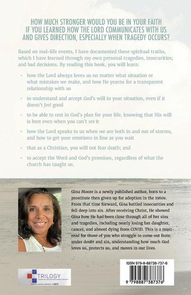 HOW MUCH STRONGER WOULD YOU BE IN YOUR FAITH IF YOU LEARNED HOW THE LORD COMMUNICATES WITH US AND GIVES DIRECTION, ESPECIALLY WHEN TRAGEDY OCCURS? Based on real-life events, I have documented these spiritual truths, which I have learned through my own personal tragedies, insecurities, and bad decisions. By reading this book, you will learn: how the Lord always loves us no matter what situation or what mistakes we make, and how He yearns for a transparent relationship with us to understand and accept God's will in your situation, even if it doesn't feel good to be able to rest in God's plan for your life, knowing that His will is best even when you can't see it how the Lord speaks to us when we are both in and out of storms, and how to get your emotions in line as you wait that as a Christian, you will not fear death; and to accept the Word and God's promises, regardless of what the church has taught us.