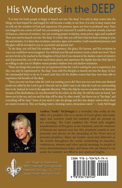 "It is time for God's people to begin to launch out into 'the deep.' It is only in deep waters that the things we have hoped for and longed for will become a reality in our lives. It is only in deep waters that we will see the wonders of God and experience His presence upon our lives in profound ways. Have you longed to see a move of God? Are you looking for a harvest? It could be a harvest of souls, a harvest of finances, a harvest of ministry. Are you wanting greater revelation, more power, signs and wonders? Then you need to launch out into 'the deep.' It is there that you will find what has been missing in your life and ministry. It is there that revelation, miracles, signs and wonders, God's manifested presence and His glory will be revealed to you in a powerful and special way! "In the deep, you will find His wonders, His presence, His glory, His harvest, and His revelation in ways you could have never imagined. You will find your life and ministry reach a whole new level. There are new levels to be reached in the Kingdom of God, but if you remain in the shallow waters of ministry and of this life, you will never reach those places, nor experience the depths that the Holy Spirit is so willing to take you to! Shallow waters produce shallow lives and shallow ministries. "There are things that you have not yet experienced that the Lord is waiting for you to experience, but they can only be experienced in the deep. Jesus told His disciples to launch out into the deep. In fact, He commanded them to do so. It wasn't until they left the shallow waters that they were then able to experience the benefits of the deep. "Have you ever run from what the Lord was wanting you to do? Have you ever run from your destiny? Jonah was called by the Lord to go to Ninevah, but he didn't want to do what the Lord was commanding him to do! Instead, he went in the opposite direction. When the ship he was on was about to be destroyed because of his disobedience, he was found out by the others on the ship. He told the men on board, "Just throw me in the sea, and you and the ship will be okay." In other words, "Just throw me in the deep, and everything will be okay"! Some of you need to take the plunge and dive into deeper waters where there are waters to swim in. They are healing waters, cleansing waters, miraculous waters." - Andy McDougal